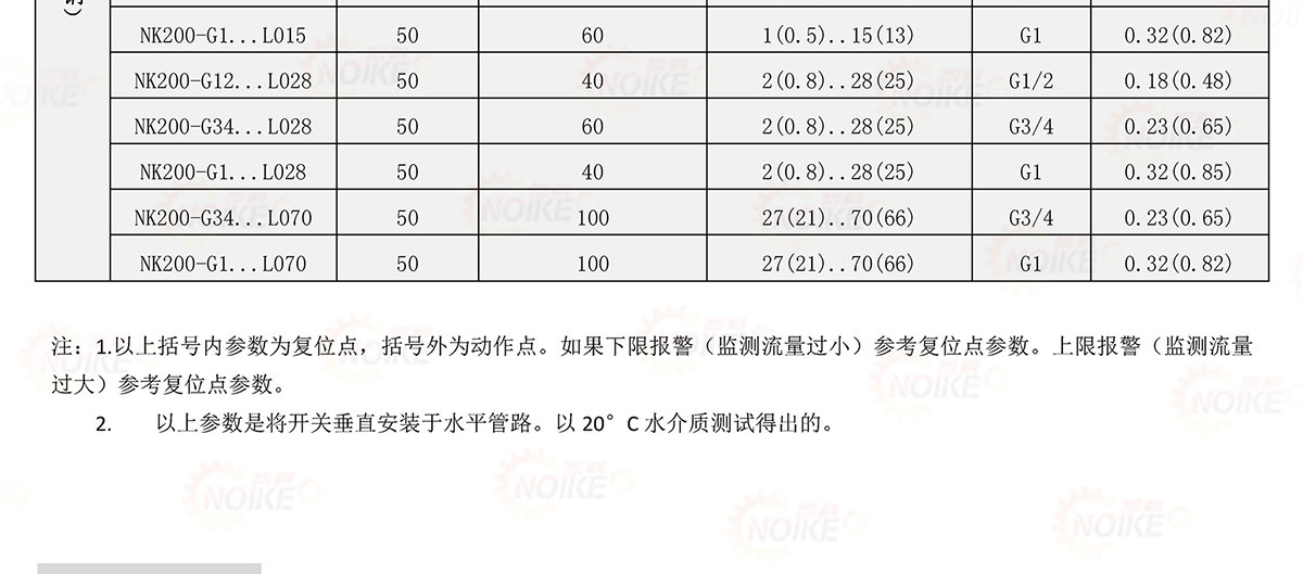 開關設定刻度;是在介質為水,溫度20C,