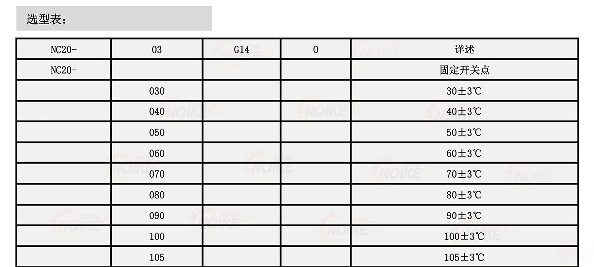 NC20系列溫度開(kāi)關(guān)可滿(mǎn)足液壓,潤(rùn)滑,傳統(tǒng)系通中對(duì)于溫度控制的不同要求,用于檢測(cè)溫度是否超過(guò)最高限或最低限。