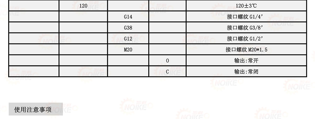 NC20與介質(zhì)接觸部分全部采用黃銅材料,接口螺紋有G1/G1/2,M20×1.5三種可供選擇,溫度范圍:30℃...........120℃