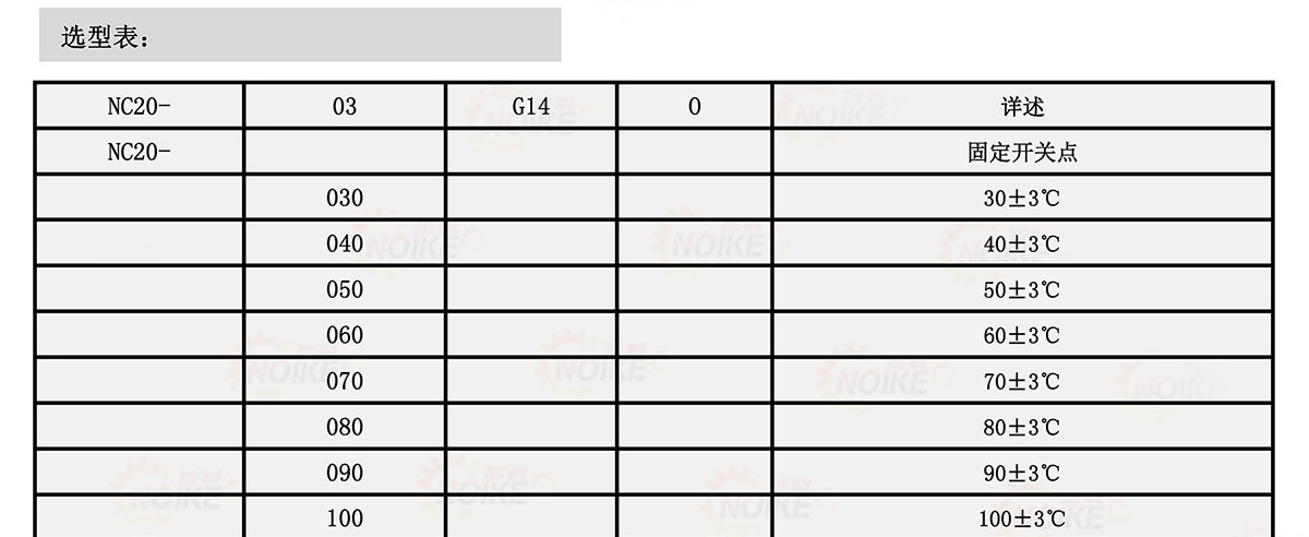 機械式溫度開關NC20系列