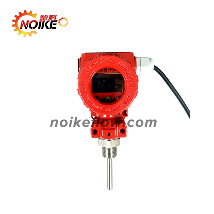 熱導式流量開關(guān)是基于熱交換原理設計的,探頭內(nèi)置發(fā)熱模塊及感熱模塊,熱傳導同介質(zhì)的流速密切相關(guān),如果管道內(nèi)沒有介質(zhì)流動,則感熱模塊接收到的熱是一個固定值,當有介質(zhì)流動時,感熱模塊所接受到的熱將隨介質(zhì)的流速變化而變化。測量時,由發(fā)熱模塊發(fā)熱,感熱模塊感測溫度,流量開關(guān)將這個溫差信號轉(zhuǎn)化成對應的電信號,從而對介質(zhì)的流量進行顯示及控制。