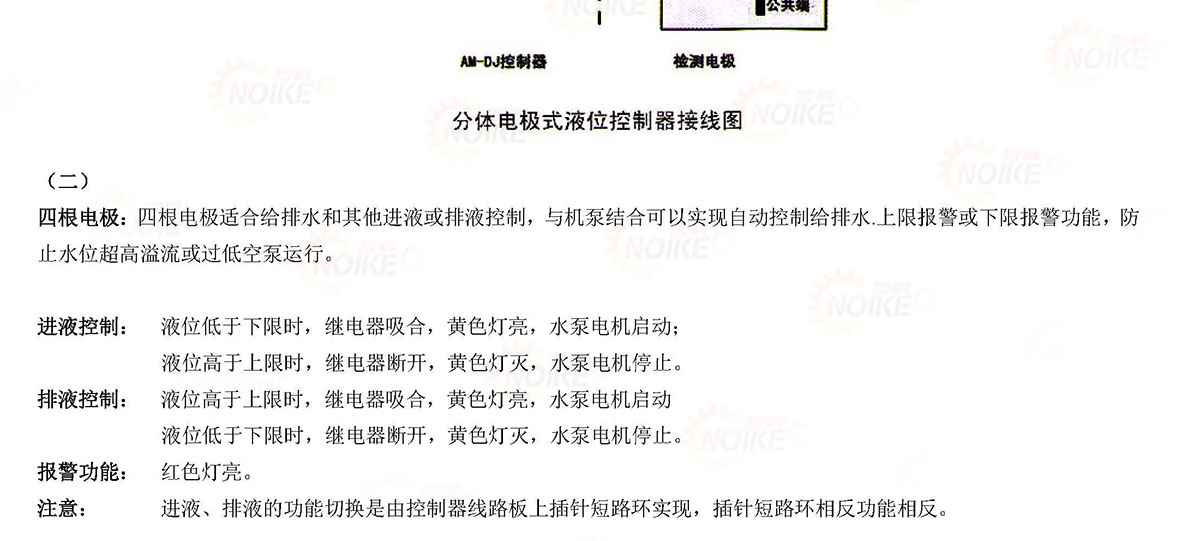 三根電極最常用,適合給排水和其它進(jìn)液或排液控制,與機(jī)泵結(jié)合可以實(shí)現(xiàn)自動控制給排水;四根電極則是在進(jìn)液或排液功能
