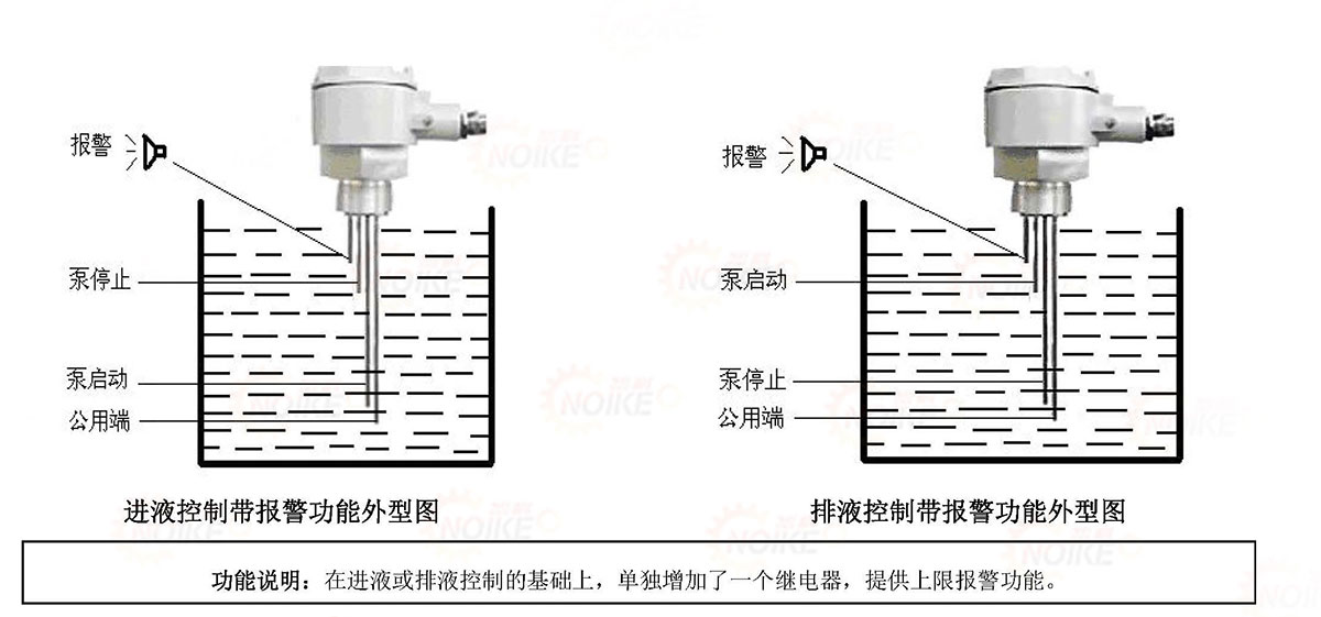 的基礎(chǔ)上增加了上限報(bào)警或下限報(bào)警功能,防止水位超高溢流或過低空泵運(yùn)行。