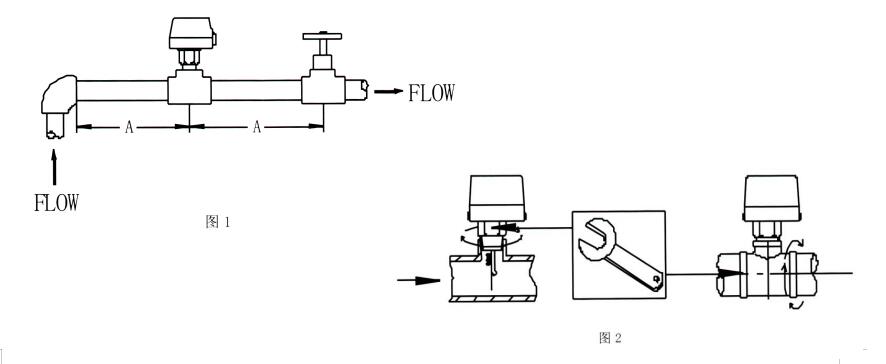3.流量開(kāi)關(guān)一定要安裝一段支線管道上,其兩邊至少5倍管徑的直線行程,同時(shí)應(yīng)注意管道中液流方向必須與開(kāi)關(guān)外殼上的箭頭方向一致,其接線端子應(yīng)在易于接線的位置;(圖1)