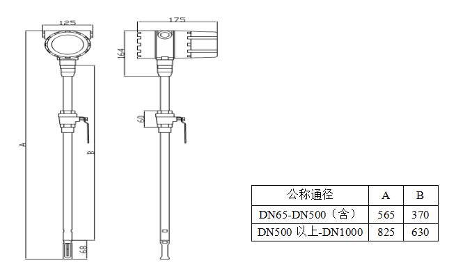 A)一體型插入式應(yīng)插入至被測管路軸心,所以測量桿長度視測管徑大小而定。訂貨時應(yīng)說明。若不能插入至管道軸心,將有廠方提供標定系數(shù),以完成準確測量。