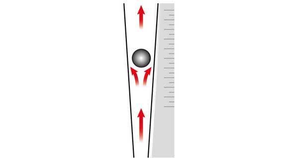 圖2.垂直安裝在透明錐形管中的球。典型目標(biāo)應(yīng)用:非透明流體的低成本本地指示。